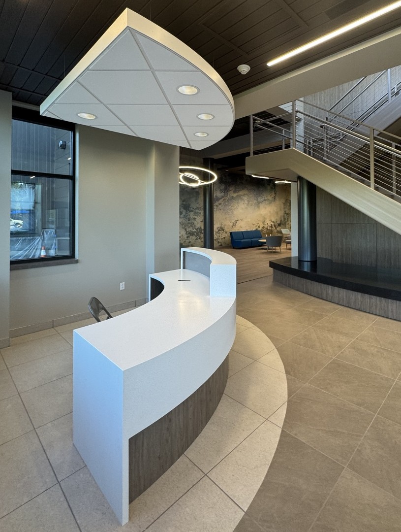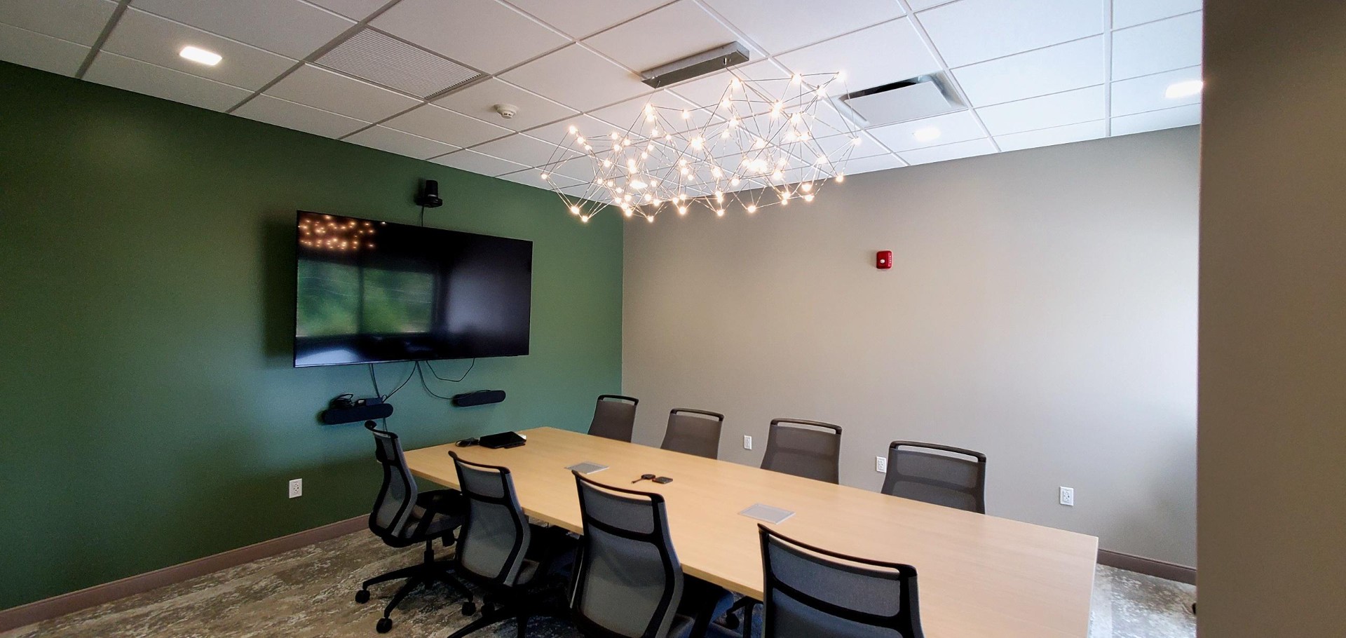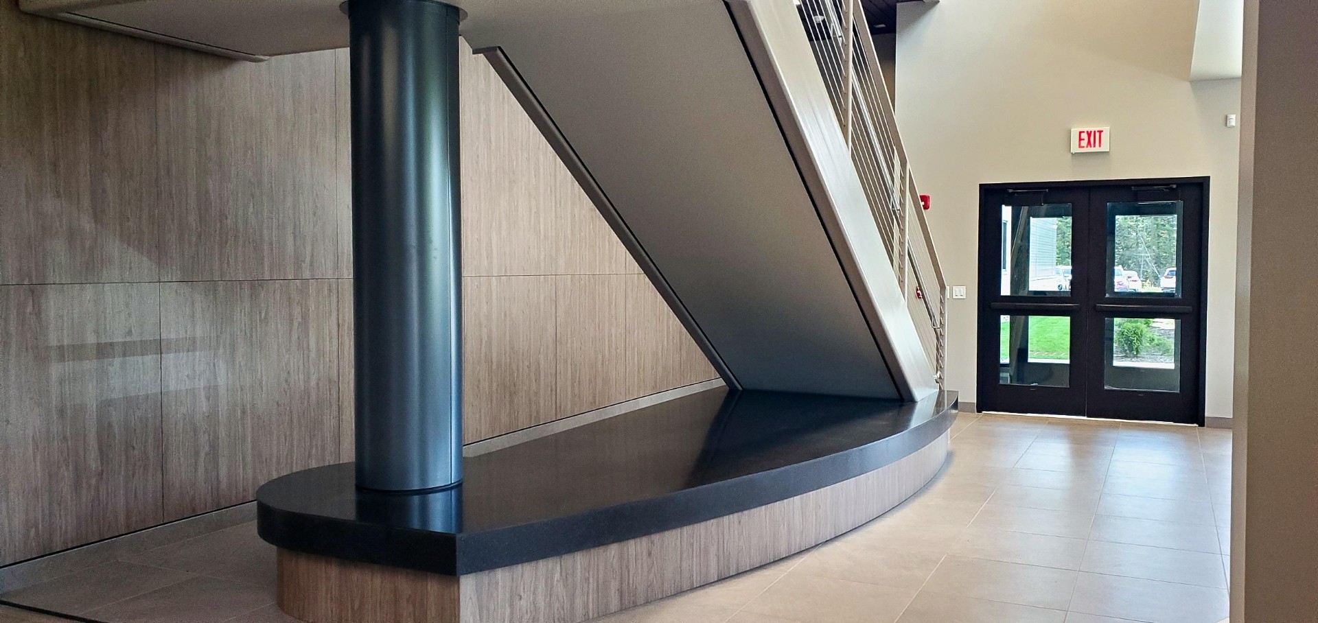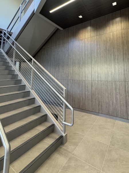 The design promotes both scientific precision and workplace connection. A central gallery links the addition to the existing building, offering staff a collaborative hub and visitors a view into the active lab environments. On the second floor, new offices and meeting spaces accommodate growth and streamline operations. Exterior materials—stone and timber—reflect the surrounding Adirondack landscape, grounding this advanced facility in its regional context while positioning it for continued innovation in biosafety and drug development.