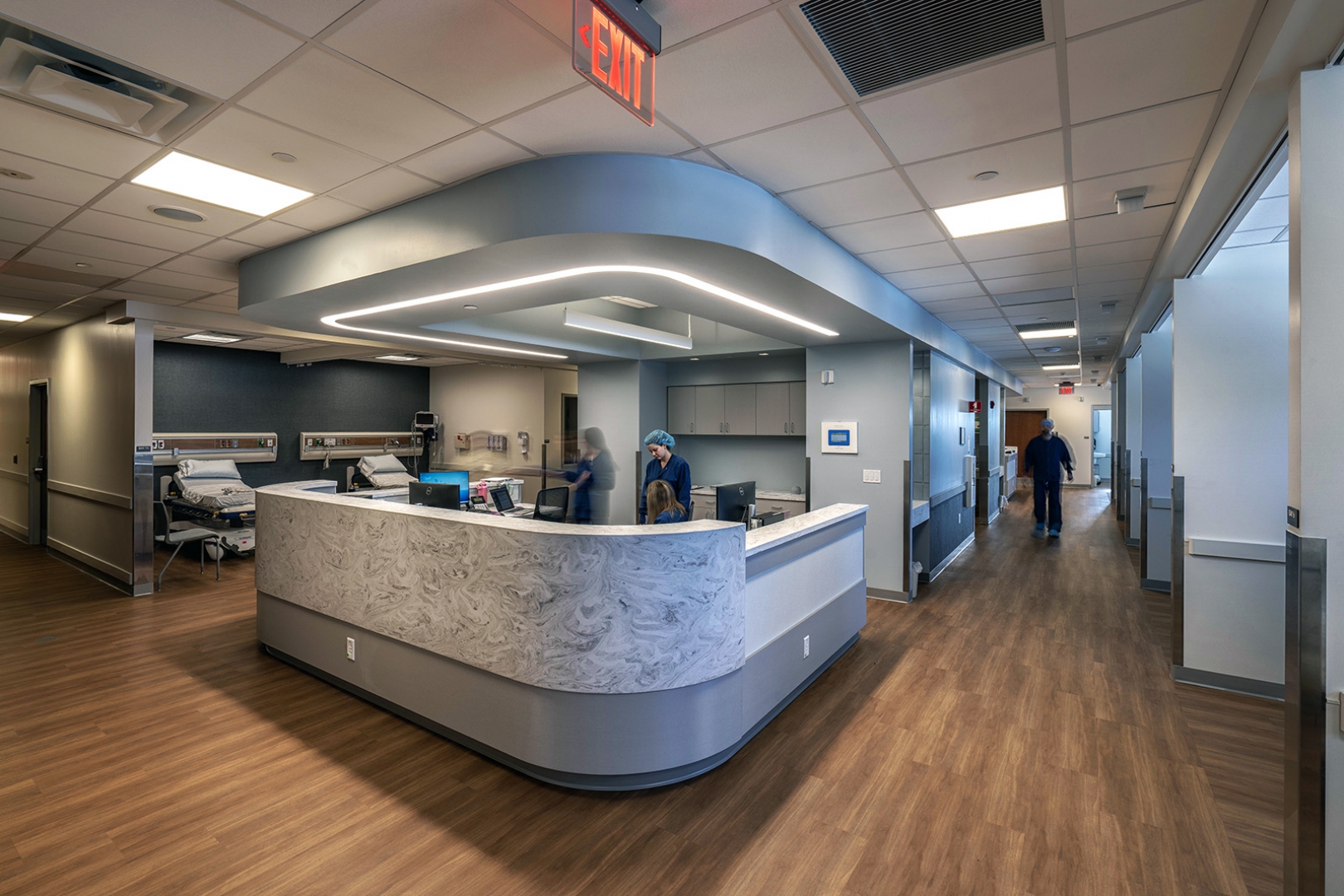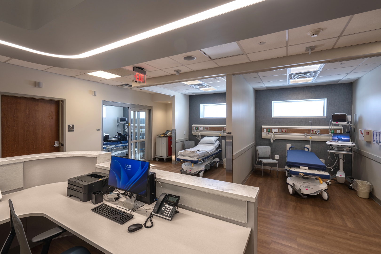 Guided by extensive input from clinical subject matter experts, the design team shaped a floor plan that strengthens spatial efficiency while supporting optimal clinical workflow, patient privacy, and overall comfort. A circular patient-flow model maximizes operational efficiency and eliminates cross traffic between incoming and post-operative patients. A dedicated discharge exit from the post-op suite further enhances the patient experience and reduces congestion at the main entrance.