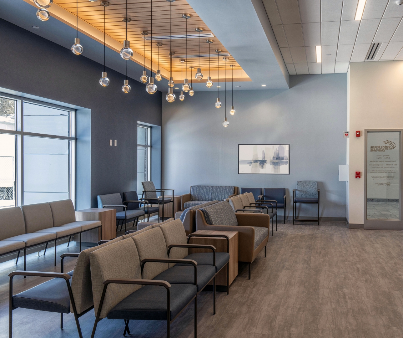 The 16,000-sf state-of-the-art facility transforms a former anchor space within a shopping mall into a modern healthcare destination and serves as the focal point of an expanded outpatient orthopedic practice.
